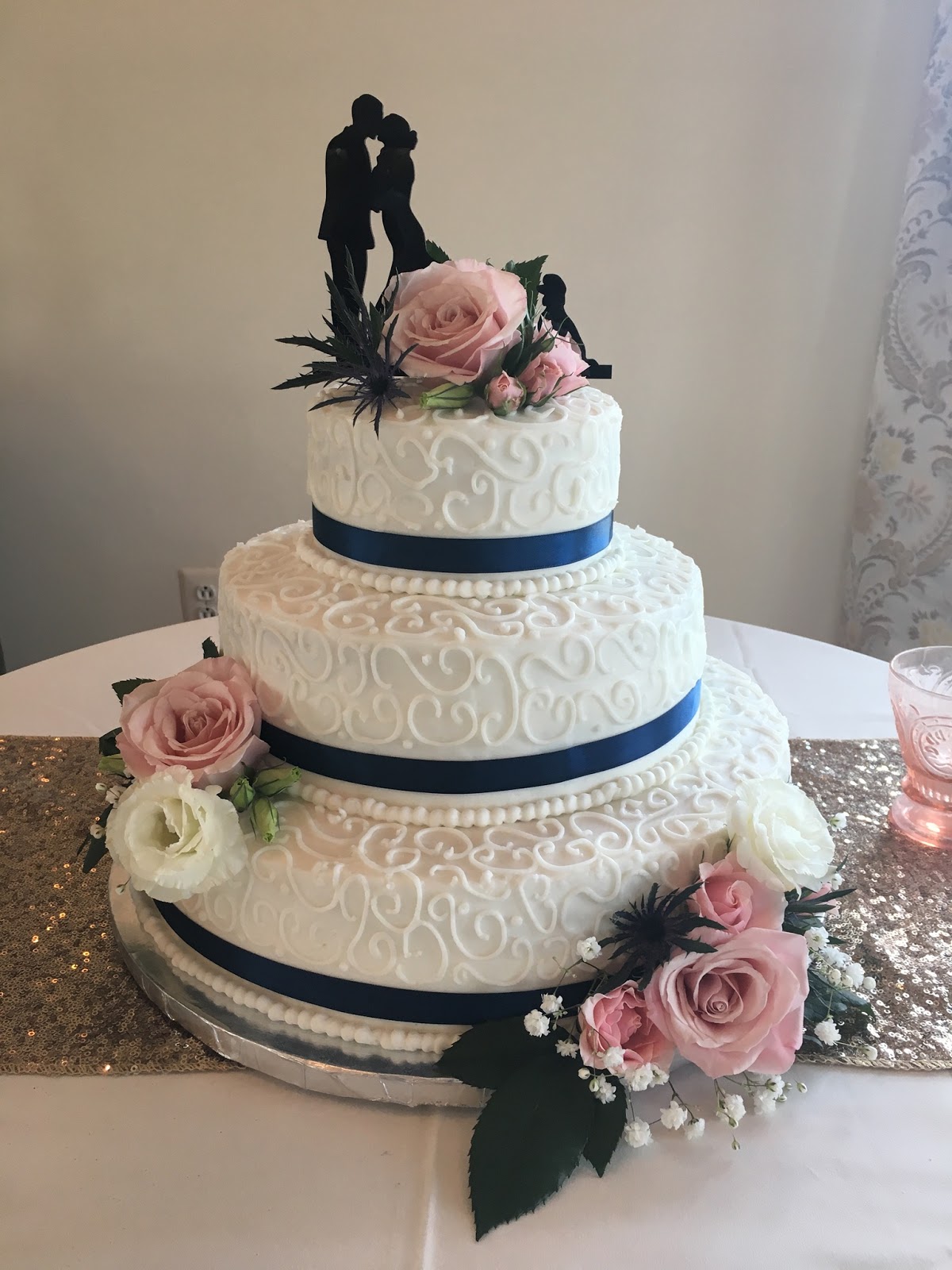 | Three Tier Satin Ribbon Wedding Cake |